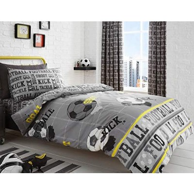 Bedlam - Football - Childrens Duvet Cover Set | Single Bed Size | Grey & Yellow Bedding