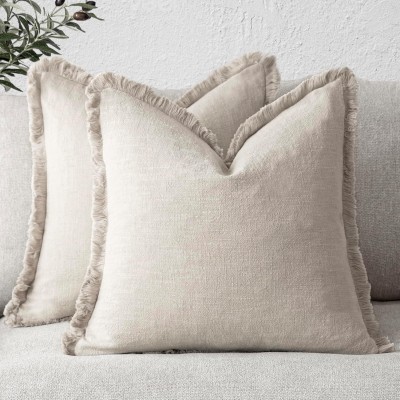 Foindtower Set of 2 Decorative Linen Fringe Throw Pillow Covers Cozy Farmhouse Boho Cushion Cover with Tassels