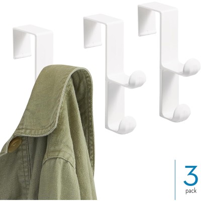 InterDesign Over The Door Organizer Hooks for Coats, Hats, Robes, Towels - Set of 3, Double Hooks