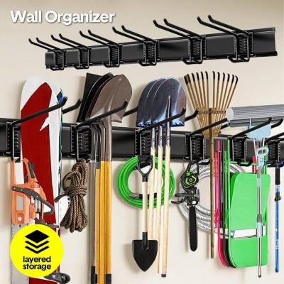 ALSTON Garage Tool Organizer Heavy Duty Wall Mount Storage Rack Steel Garden Tool Hanger with 6 Removable
