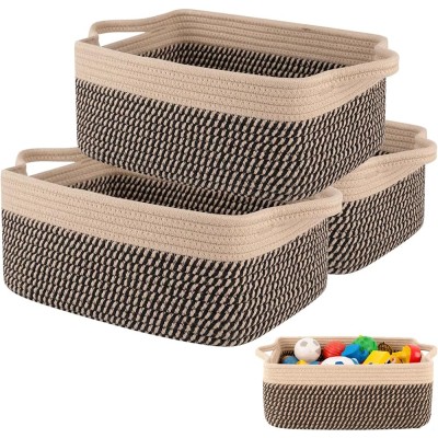 Shukitechi 3 Pack Woven Storage Baskets, Cotton Rope Organizer Bins with Handles for Shelves, Closet